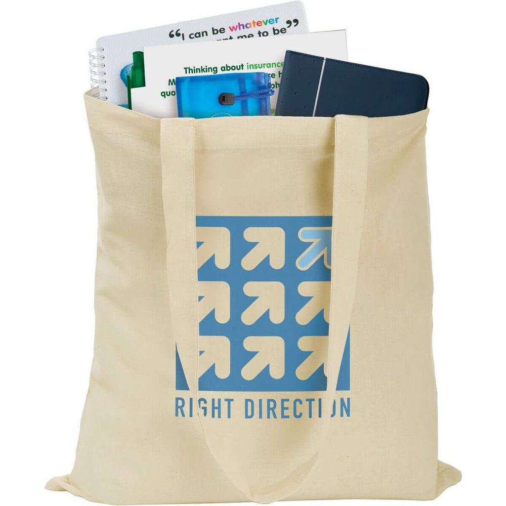 Crafted from 100% 5oz natural cotton, this Budget Cotton Tote Bag offers durability and eco-friendly appeal. Measuring 42cm by 38cm, its long handles provide versatile carrying options—either by hand or comfortably over the shoulder. Ideal for daily errands or promotional use, this tote combines practicality with sustainable materials for professional and everyday needs.