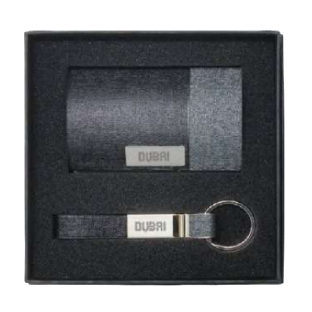 ( 2 ) Metal keychain with black leather strap