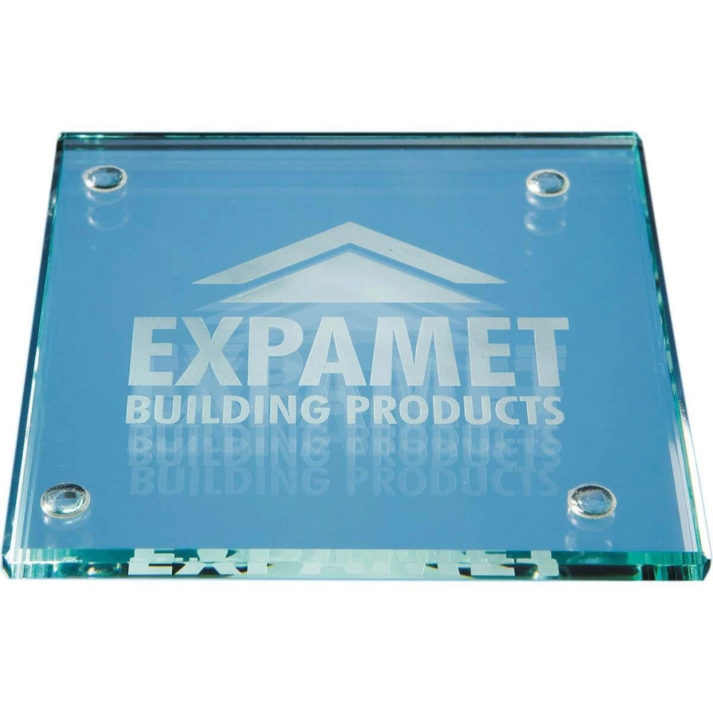These clear glass coasters measure 10cm square and offer a sleek, durable surface for your drinks. Each coaster can be expertly personalized with your own design, precisely engraved to create a lasting impression. Small feet elevate the coaster, preventing any damage or scratches to your desk or tabletop. Presented in an individual gift box, these coasters combine functionality with refined presentation, making them an ideal choice for stylish branding or thoughtful gifting.