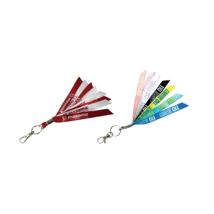 8 Ribbon Promotional keychain made from Thin, ribbed polyester material.