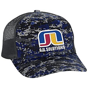 The Digi Camo Snapback Trucker Cap combines modern digital camouflage design with classic trucker cap functionality. Featuring a breathable mesh back and adjustable snap closure, it ensures a comfortable fit and ventilation during extended wear. The structured front panel offers durability and shape retention, making it ideal for outdoor activities or casual streetwear. This cap provides both style and practicality for those seeking reliable headwear with a contemporary edge.