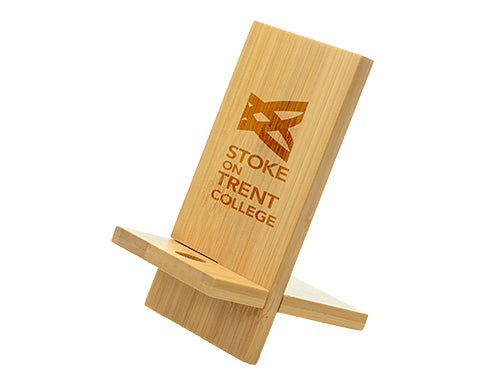 Perfect for showcasing at exhibitions, trade shows, and events, these phone stands are made from natural, eco-friendly bamboo sourced and produced sustainably. With a handy cut out for a charging wire, these stands come in two easy-to-assemble pieces and make for a must-have desk accessory. Choose between screen printing, laser engraving, or a stunning full color UltraHD™ print. With slight variations in color due to the natural material, each stand is unique and represents the quality and sustainability of your brand. Elevate your brand and make a lasting impact with this valuable accessory.