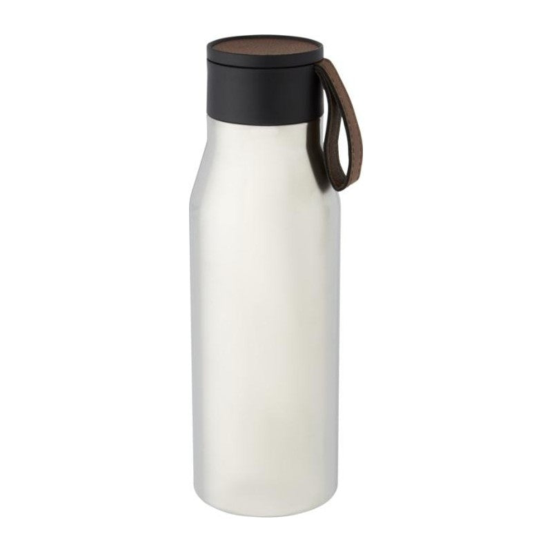 This 500ml insulated bottle features a copper vacuum design with a sleek stainless steel finish and a PU leather strap detail for a refined look. It maintains the temperature of hot or cold drinks for hours, ensuring optimal beverage enjoyment throughout the day. Ideal for laser engraving, the bottle reveals a silver logo for a subtle yet professional branding touch. Delivered in an eco-friendly recycled gift box, it combines practicality with sustainable presentation—perfect for corporate gifting or everyday use.