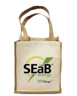 single or full color printing. Flat jute material handles.