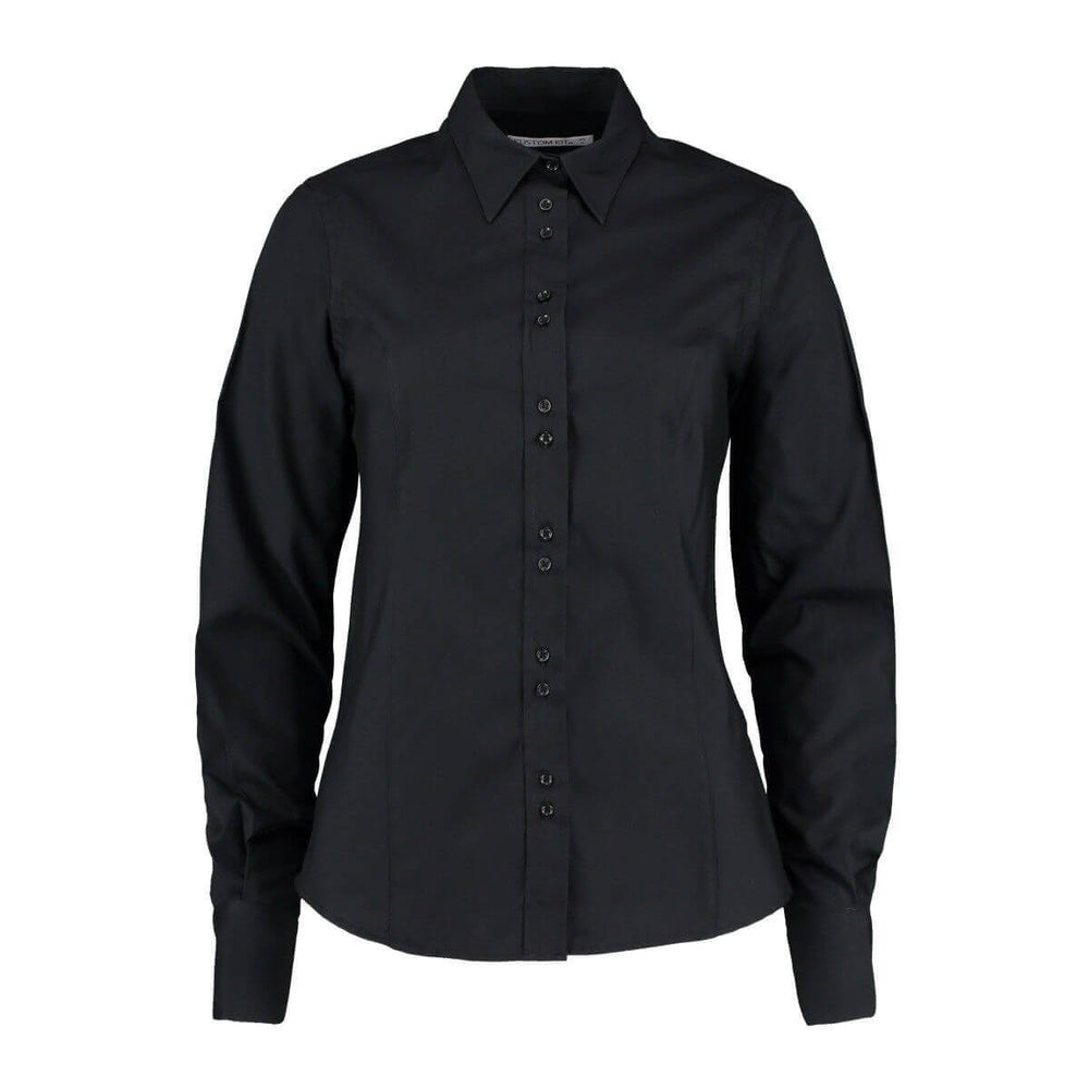 This tailored long-sleeved work shirt features a fused stand-up collar and two-button cuffs, delivering a professional and polished look. Crafted from 100% cotton, it ensures breathability and comfort throughout the day. Available in sizes 8 to 20, it offers a precise fit suitable for various body shapes, making it an ideal choice for business settings demanding both style and durability.