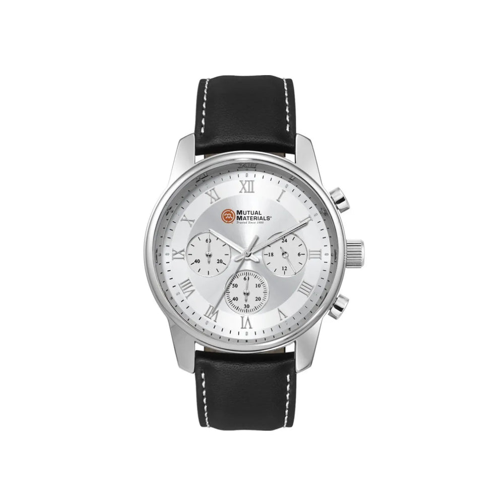 This sophisticated watch features a reliable Seiko VD54 chronograph movement enclosed in a durable ionic steel-plated alloy case. Choose between a sleek black or silver dial paired with either a black padded strap or a brown distressed leather strap, both with a 20mm width for comfortable wear. Designed for both style and function, it is backed by a one-year guarantee from the date of purchase, ensuring quality and performance you can trust.