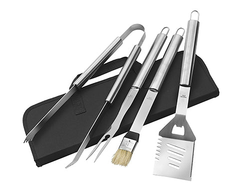 Elevate your brand presence with the Malham 4 Piece BBQ Accessory Sets—a premium promotional solution for summer entertaining and outdoor events. Each set includes four stainless steel tools: fork, spatula, brush, and tongs, expertly crafted for durability and performance. Housed in a convenient carrying pouch, these sets are ideal for garden gatherings, corporate giveaways, and holiday promotions. Customise with your logo for a polished, professional brand impression that resonates with clients and guests long after the season ends.