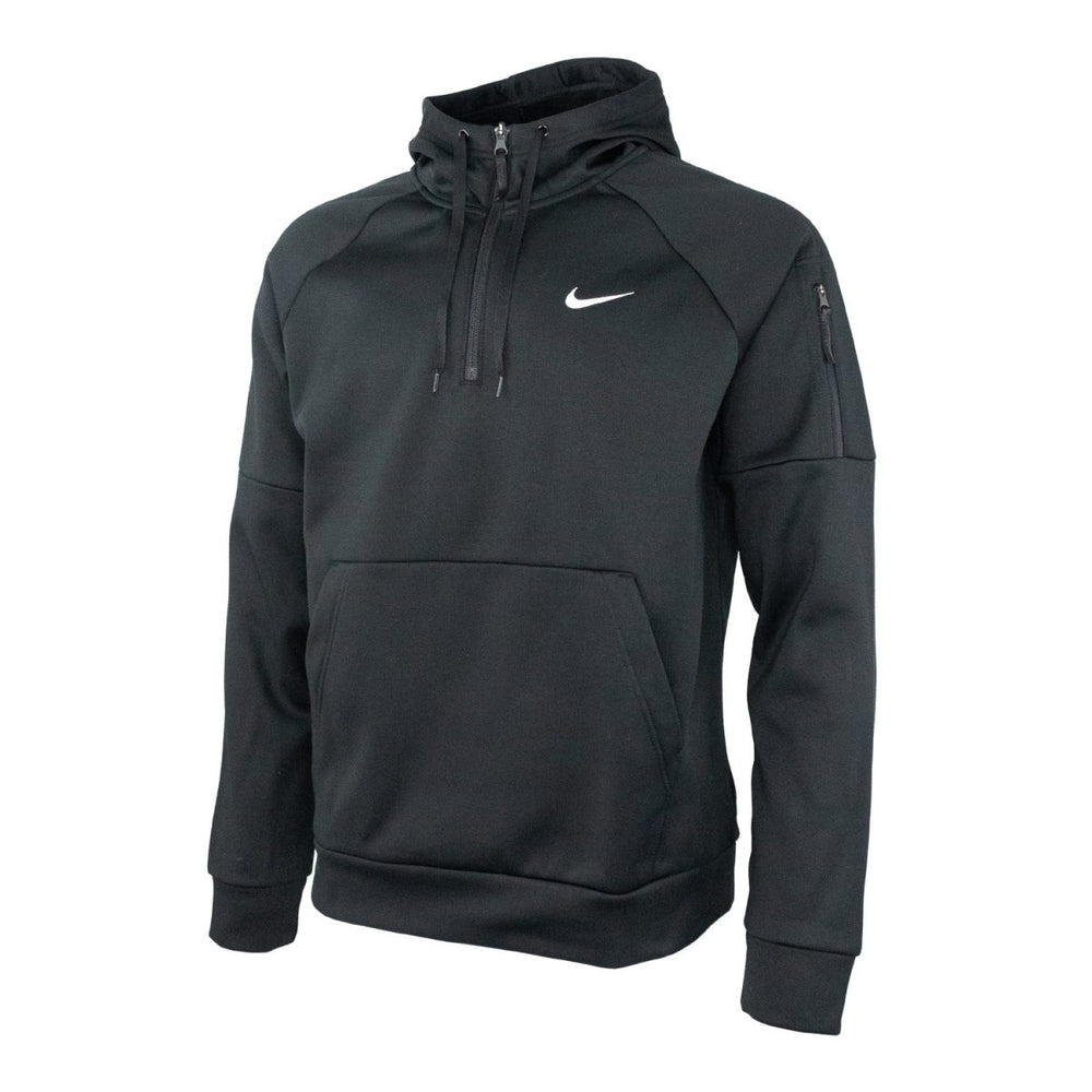 Designed with Nike Therma-FIT technology, this men's 1/4-zip hoodie efficiently retains your body heat for optimal warmth during cold-weather workouts. The soft fleece interior offers comfortable insulation, while the zippered pocket on the left arm provides secure storage for essentials like keys or cards. Available in sizes S to 2XL, it combines performance and practicality for your fitness needs.
