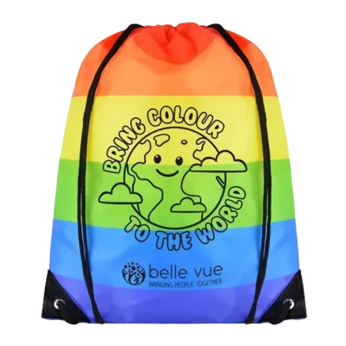 Rainbow Drawstring Bags combine vibrant multicolor design with functional convenience, making them ideal for carrying essentials with style. Crafted from durable materials, these bags offer reliable storage and easy portability through their secure drawstring closure. Perfect for promotional events, school, or everyday use, their eye-catching rainbow pattern helps your brand or personal style stand out while providing practical utility.