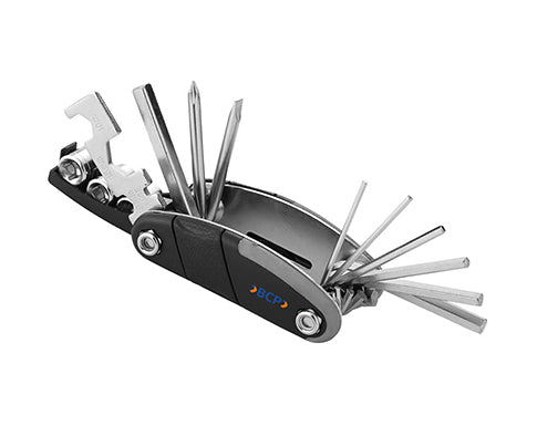 The Ranger 16 Function Multi Tool combines professional-grade engineering with practical versatility. Built with a durable rubber casing, this compact instrument houses six hex keys, four wrenches, three sockets, dual screwdrivers, and an adapter—delivering comprehensive functionality in a single, portable device. Ideal for corporate gifting at trade shows, conferences, and retail events, it appeals to tradespeople and DIY enthusiasts alike. A sophisticated choice for businesses seeking quality promotional merchandise that demonstrates genuine utility and lasting value.