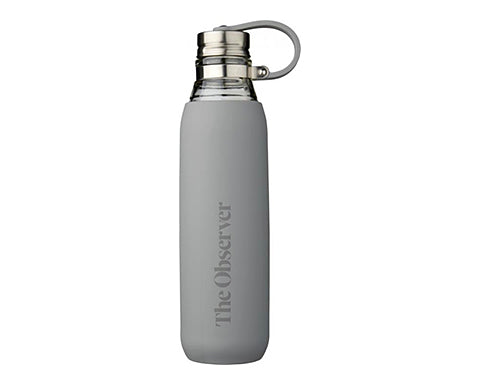 • Single-wall glass sports bottles which are wrapped in a soft grip silicone sleeve for added user comfort along with a non-slip bottom