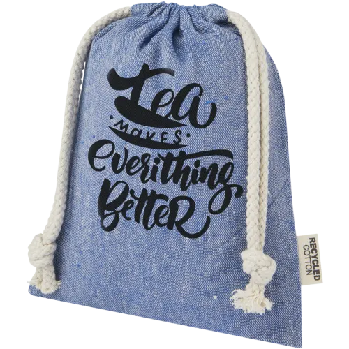 Crafted from GRS-certified recycled cotton, this small gift bag offers an eco-friendly alternative for packaging. Its durable material ensures reliable reuse, while the compact size makes it perfect for presenting small items thoughtfully and sustainably. Ideal for businesses aiming to enhance their environmental responsibility without compromising quality.