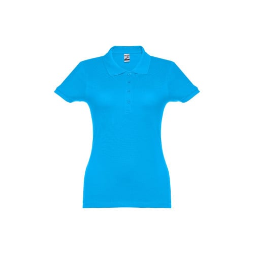 This women's polo shirt is crafted from 100% carded cotton piqué (195 g/m²), except in colour 183 which contains 85% cotton and 15% viscose for a softer feel. It features a ribbed collar and sleeves, with the collar reinforced by a piqué ribbon to maintain shape and durability. The front has four matching buttons next to the collar, plus an extra spare button sewn into the inner seam. The shirt is piece cut and sewn for a tailored fit, available in sizes S to XXL, offering both comfort and a refined appearance.